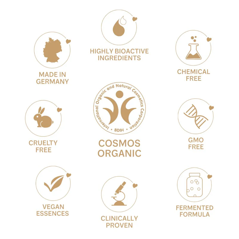 100% certified • clinically proven • transformative results • vegan formulations • no animal testing • Made in Germany • Award Winning • 100% natural • 100% effective •
